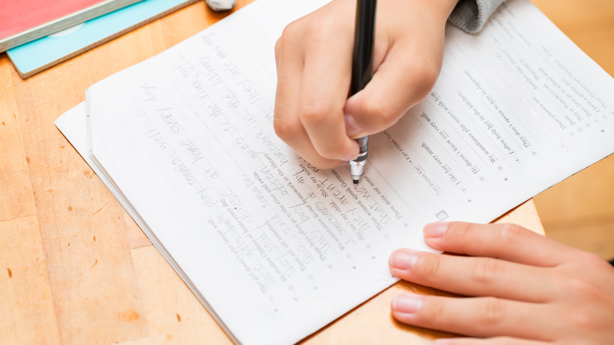 英文法を日本語で説明することにより、「わからない」を「わかる」に変えます。 学校で使用している教書準拠のワークブックも使って英文法の基礎をしっかりサポートします。